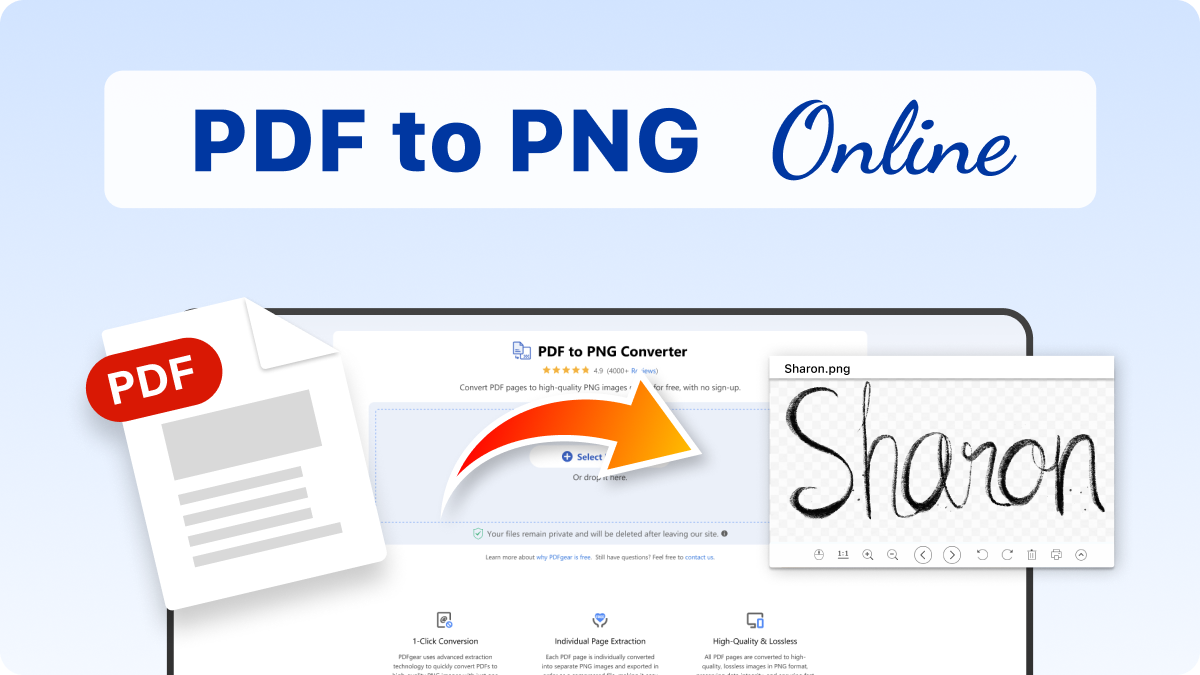 PDFgear uses advanced extraction technology to quickly convert PDFs to high-quality PNG images with just one click, in just a matter of seconds.