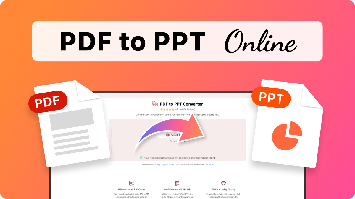 You can enjoy unlimited online PDF to PPT conversions without signing up for an account with your email or phone. No need to download anything, just upload your PDF to start a quick conversion.