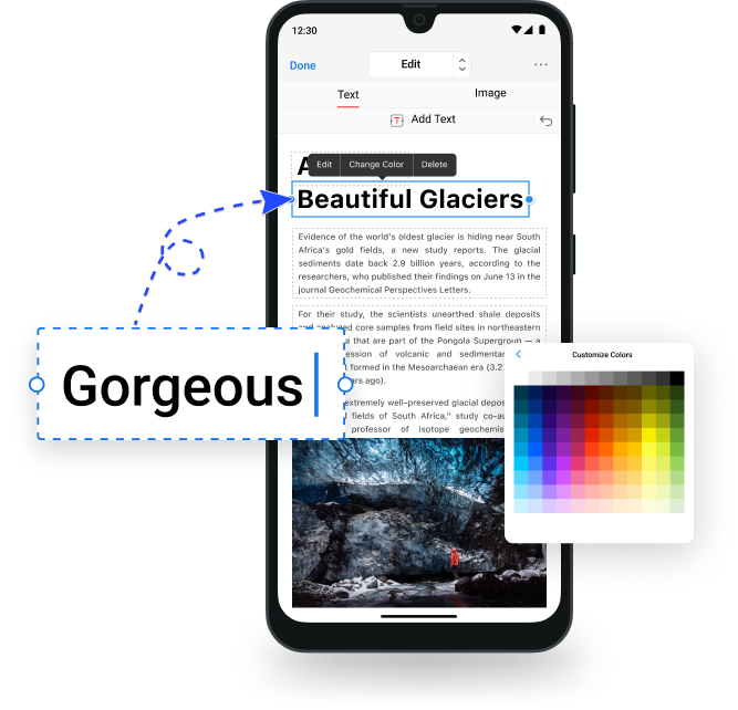 A free PDF editor app for Android to read, summarize, edit, fill out, sign on, and organize PDFs.
