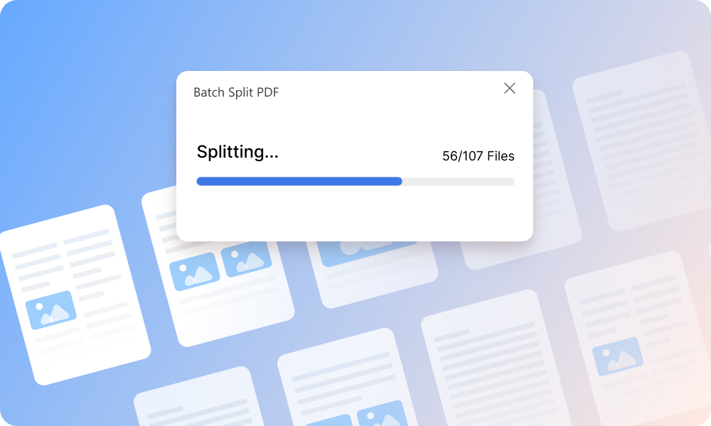 Save time by splitting multiple PDFs at once with PDFgear. Each file opens in its own window—just set your splitting preferences, start the process, and let PDFgear handle each file in parallel. This way, you can divide multiple PDFs efficiently without waiting on individual files.