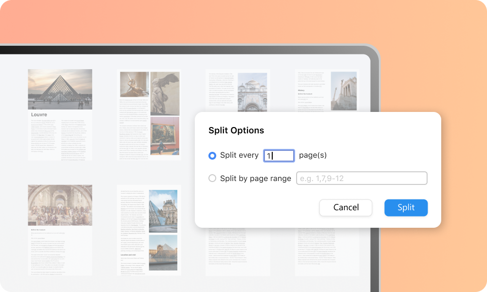 Two versatile splitting methods are provided to control how to divide your PDF. Choose a customizable page range to divide the PDF into multiple multi-page documents, or use a fixed page range to extract specific pages with precision. Tailor your split PDFs to suit your exact needs with ease.