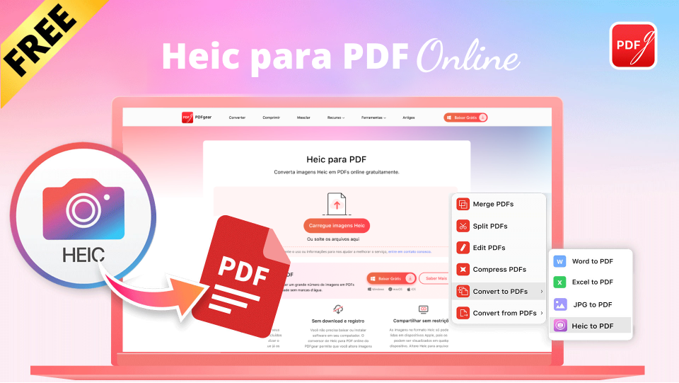 Para combinar várias imagens HEIC em um documento PDF, tudo o que você precisa é de um conversor online de HEIC para PDF como o PDFgear. O PDFgear permite que você mescle imagens HEIC do seu PC ou celular em um PDF de várias páginas de maneira personalizável.