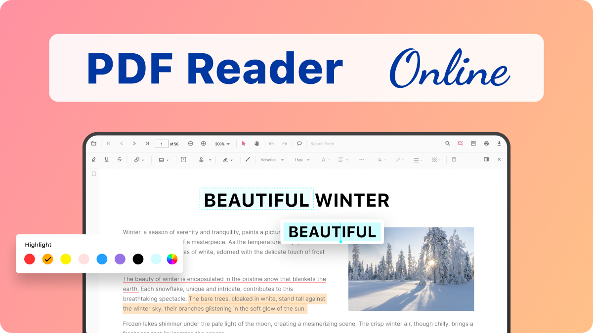 Beyond viewing PDFs, our online reader lets you annotate, comment, sign your documents, and more. Using our software version, you can also summarize and analyze PDF documents quickly with Chat PDF, along with other advanced features.